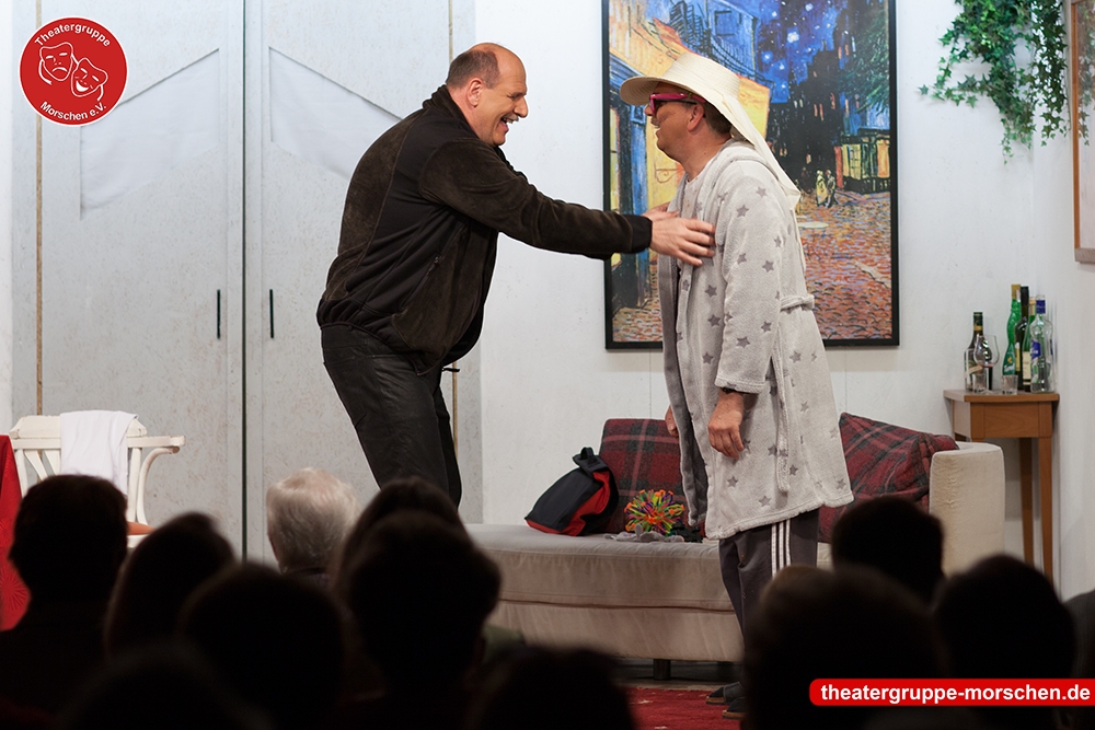 Was folgt, ist ein temperamentvolles Verwirrspiel voller überraschender Wendungen. Als Steffi plötzlich auftaucht, um ihre Sachen abzuholen, trifft sie auf Martin und Tim – und staunt nicht schlecht über die unerwartet harmonische Männer-WG. Zwischen Eifersucht, Missverständnissen und viel Situationskomik steht plötzlich die Frage im Raum: War Martin nicht eigentlich hetero?